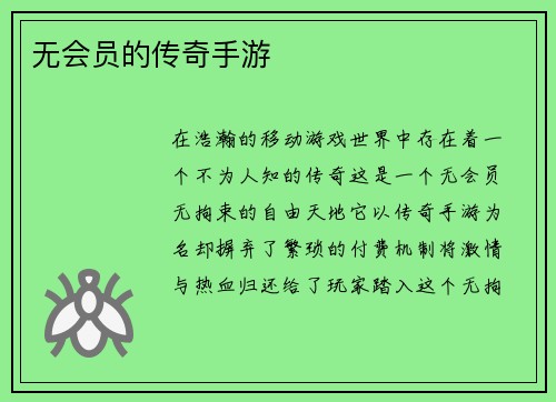 加入无会员传奇手游,开启一段自由自在的热血征途。在这里,你的实力和谋略才是你的通行证,你的激情和热血将点燃整个传奇大陆。无会员限制,无付费门槛,让每个人都能在这个无拘无束的传奇世界中尽情翱翔。